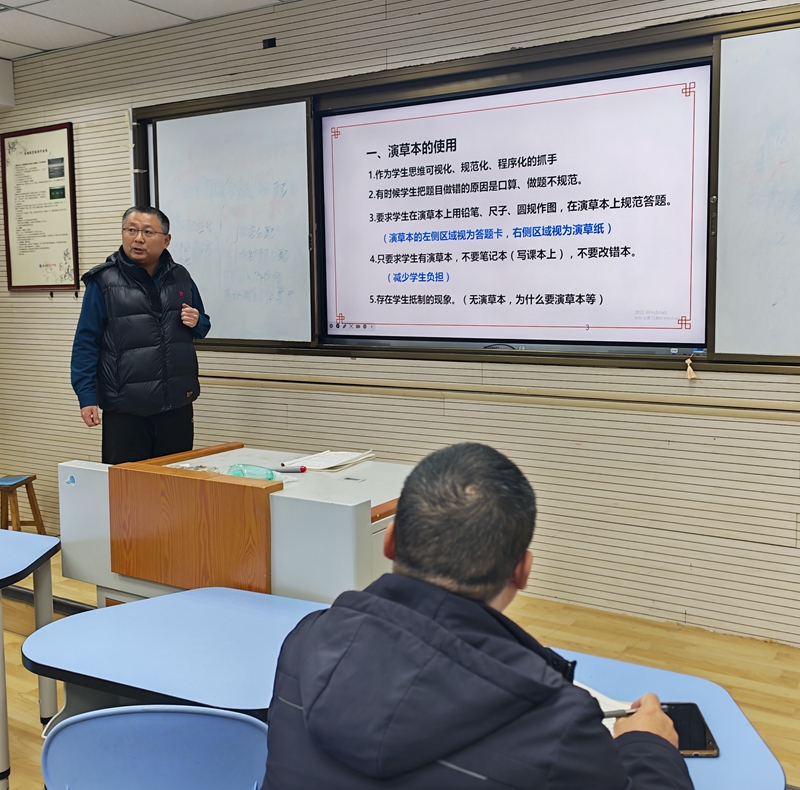 物理组吴宾老师围绕“提升成绩的抓手方式”系统介绍了六项教学实践:一是规范使用演草本,推动学生思维可视化与答题规范化;二是灵活运用小测,以短时检测增强学生日常压力与反馈;三是采用多样化授课模式,共同指向“把时间还给学生”;四是开展小组讨论,促进合作学习;五是实施周末滚动练习,加强知识巩固;六是使用课堂记录本,辅助学习过程管理。