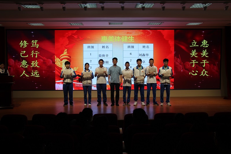 为进一步发挥榜样的引领作用,表彰大会分别对惠美学生、惠美学生会干部、惠美班干部、惠美学优生、惠美课代表、惠美德馨生、惠美体健生、惠美班级、惠美宿舍、惠美艺佳生进行了表彰。